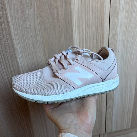 New Balance sneakers joggesko i størrelse 37. Skoene er i en lys rosa farge med overdel. Noe missfarget av bystøv som ikke går bort, men nyvasket .