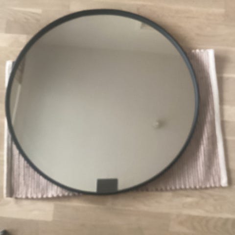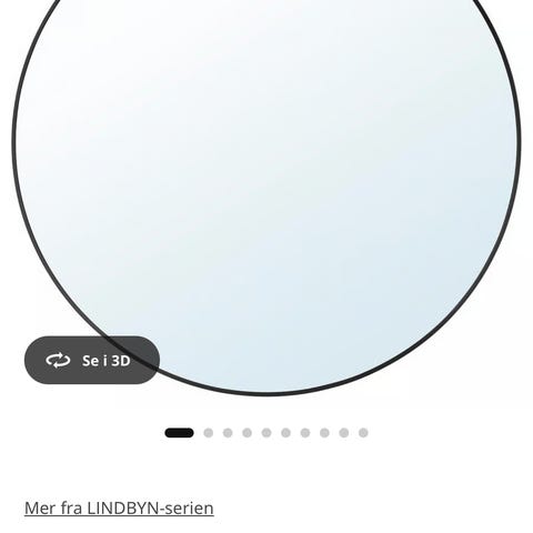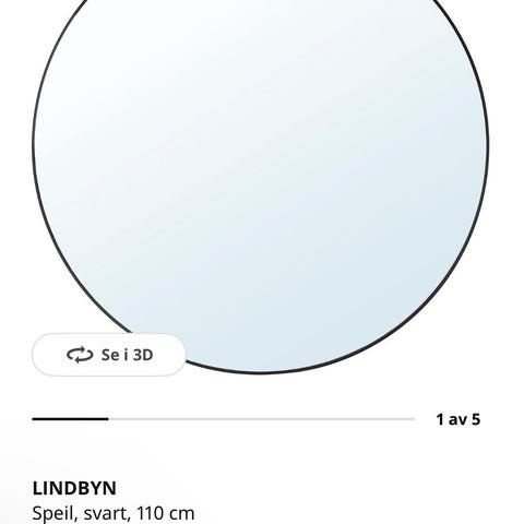 IKEA LINDBYN speil med rund form og svart ramme. Diameteren er 50 cm. Speilet er egnet til bruk på bad, soverom, gang eller andre rom der det er behov for et vegghengt speil. Nøytral utforming som passer inn i ulike interiørstiler.