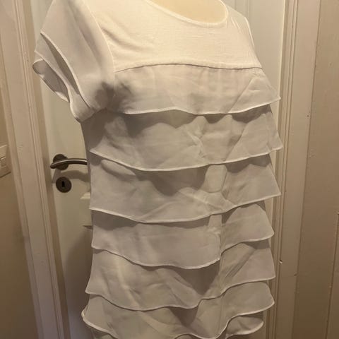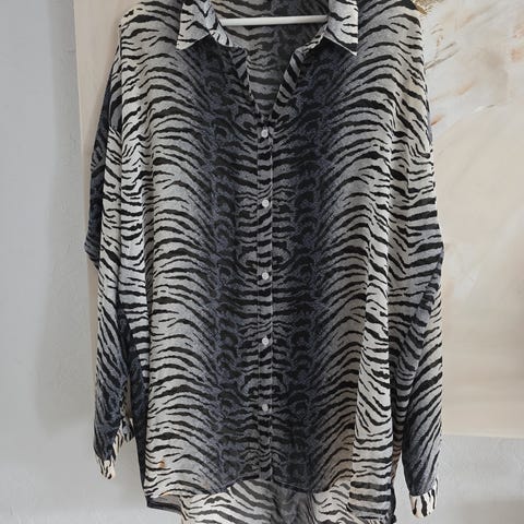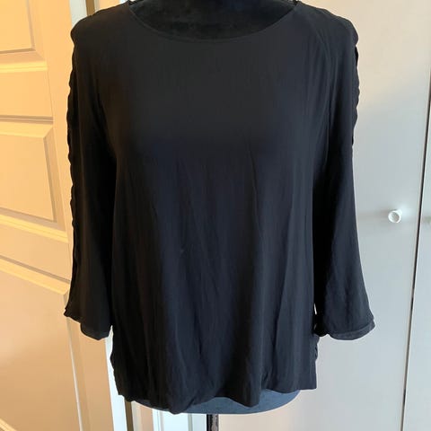 Skjorte/bluse i tynnt «chiffon-stoff» i farge, sort, beige, offwhite - størrelse L - 42-44 (merket EU44)