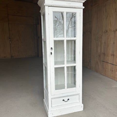 To fine vitrineskap i mørkt tre og glass selges. Behandlet fint og ser bra ut. Usikker på alder og merke.