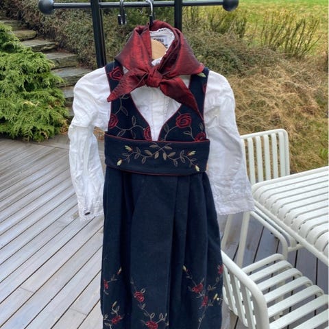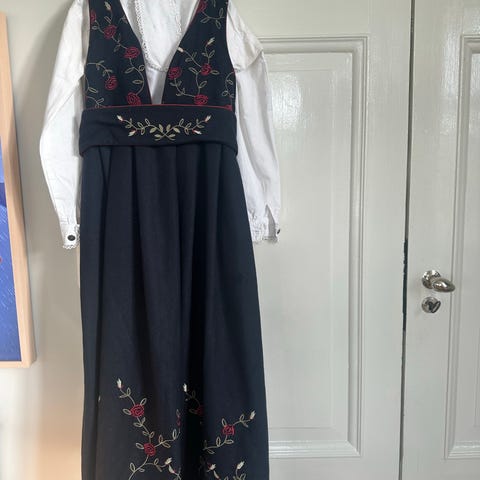Pent brukt festdrakt, Maxemilla, strørrelse 8 år. Mørk blå. Skjorte og tørkle følger med.