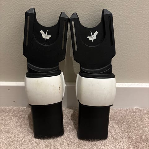 Bugaboo adapter til bilstol. Adapterne er i fargene svart og hvit og brukes til å feste kompatibel babybilstol på Bugaboo-barnevognens understell. Leveres som et sett med to adapterdeler, én for hver side av vognen. Egner seg for brukere som ønsker å kombinere Bugaboo-vogn med bilstol for enkel overgang mellom bil og vogn, forutsatt at både vogn og bilstol er kompatible med denne adaptertypen.