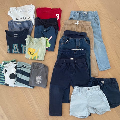Noe er godt brukt, et par plagg har noen flekker, men uten betydning for bruken. Ingen hull.