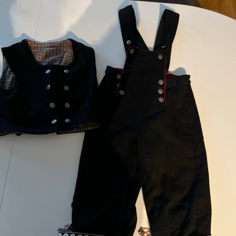 Nydelig fin komplett festdrakt til gutt 2-3 år. Veldig pent brukt, og du får med ekstra knapper. Ingen flekker på skjorten eller de andre delene for den saks skyld. Kommer fra et røyk- og dyrefritt hjem.