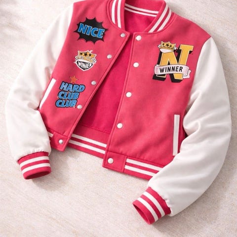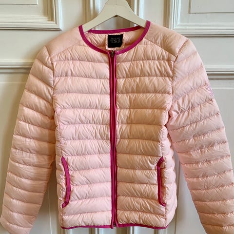 Jakken er rosa og laget i nylon. Den har rund hals uten krage, knappelukking foran og horisontale vatterte sømmer. Jakken har to frontlommer med glidelås. Passer som lett ytterjakke i overgangssesonger.