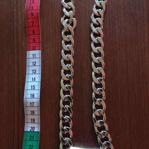 Glitter kjede for dame i stål med anheng i plast. Smykket har flere kuler og dekorative elementer samlet i et anheng, samt en brun sløyfe som detalj. Lengden på kjedet fremgår av bildet med målebånd. Egnet som motesmykke til hverdagsbruk eller til å komplettere antrekk ved ulike anledninger.