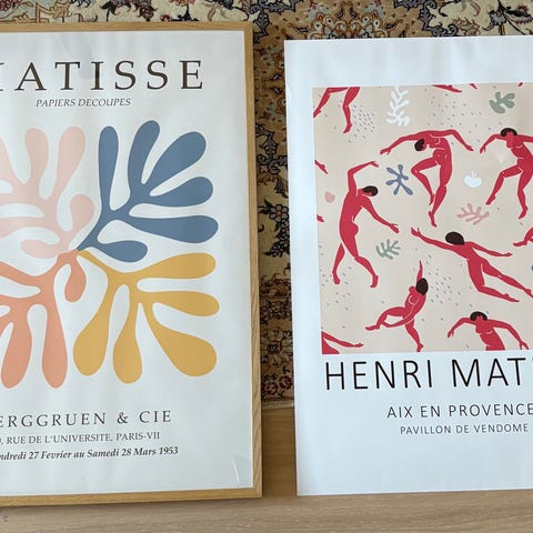 Selger dette nydelige bildet av Henri Matisse, ramme medfølger. Både ramme og motiv er i god stand. Egner seg som veggdekor i stue, kjøkken, gang og soverom.