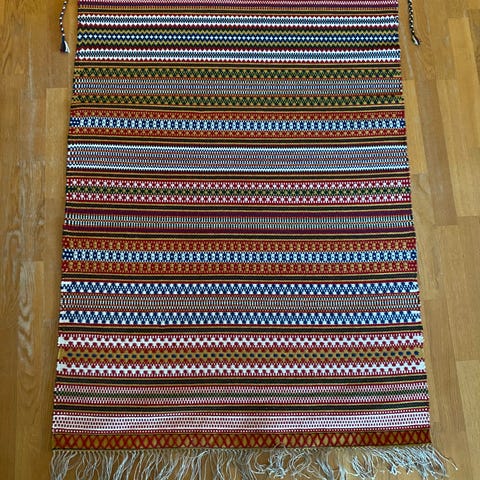 Nydelig teppe som aldri har vært brukt. Vevd på Vestlandet, lengde 1.56 og 0.95 br