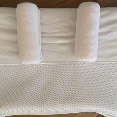 Brukt i tre måneder til en baby, og kun brukt med madrassbeskytter (som også medfølger). Ser ubrukt ut.
