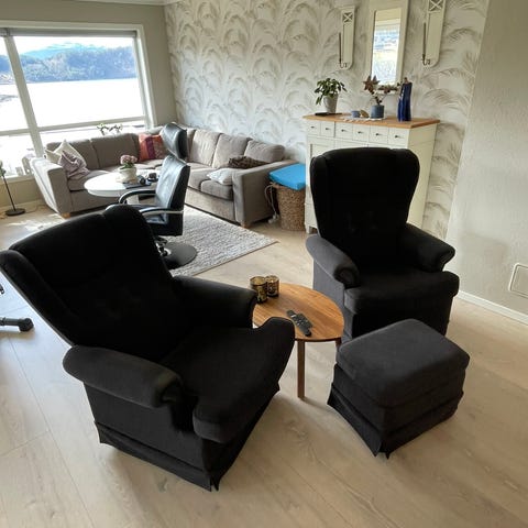 Selger desverre våre to gode og veldig fine og dekorative stoler da vi trenger plass til større sofa!