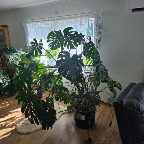 Monstera plante med store grønne blader. Passer som dekorativ inneplante. trenger bare litt kjærlighet og omsorg.