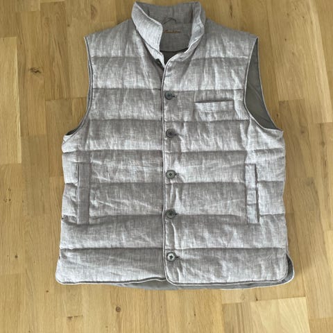 Lekker Barbera vest med lett padding og ekte Horn knapper i str.52. Kjøpt i Milano. Passer utmerket vår/sommer/høst