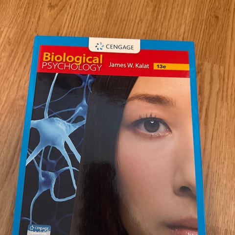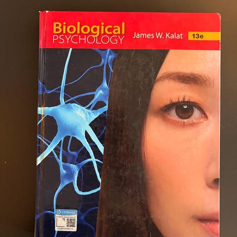 Cengage Biological Psychology lærebok i psykologi, 13. utgave. Boken er på engelsk og skrevet av James W. Kalat. Den dekker temaer innen biologisk psykologi, blant annet nervesystemets struktur og funksjon, hjerneprosesser, atferd og kognisjon. Egner seg som pensumlitteratur eller referanseverk innen psykologi og tilgrensende fagområder som nevrovitenskap og utdanning.