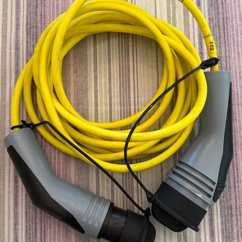Volkswagen ladekabel for elbil. Kabelen har kontrollboks med statusindikatorer og tilkobling mot bil i den ene enden. Egnet for lading av Volkswagen elbiler og ladbare hybrider som bruker denne typen kontakt. Leveres med oppbevaringspose som gjør det enklere å holde kabelen samlet og beskyttet under lagring og transport.