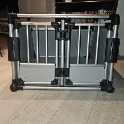 Pent brukt hundebur med lås og nøkler.