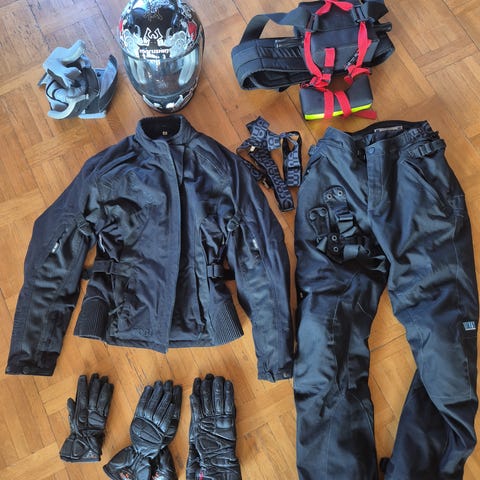MC-bekledning til 10-14 år - jakke str. 34 og bukse str. 140 med MC-hjelm str.M