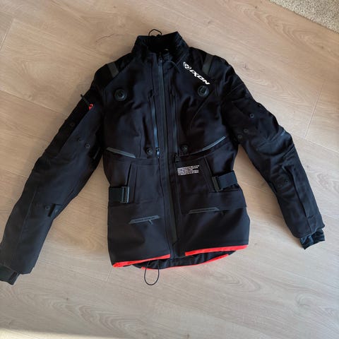 Jakken har høy krage, justerbare stropper i ermer og liv samt glidelås og borrelås i front. Det ble byttet innvendig sikkerhetspolstring (ryggskinne, skulder og albue) i 2025.