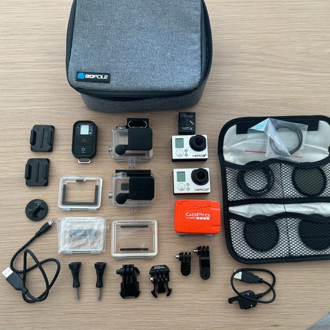 Flere baterier følger med men jeg er ikke sikker på om alle batteriene forstatt fungerer, jeg har ikke brukt kamera i mange år.