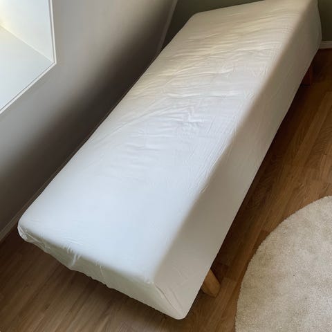 IKEA VESTERÖY madrass i størrelse 90x200 cm. Madrassen har grå trekk på sidene og lys overside. Egnet for enkeltseng eller som del av en dobbeltsengløsning med to madrasser. Passer til standard sengestammer og rammemadrasser i samme størrelse. Kjøpt denne på Finn selv i går, men fant ut at jeg trengte 80cm da jeg kom hjem. Tidligere eier har brukt madrassen på gjesteseng, fremstår i utmerket stand. Hentes på Ugla.