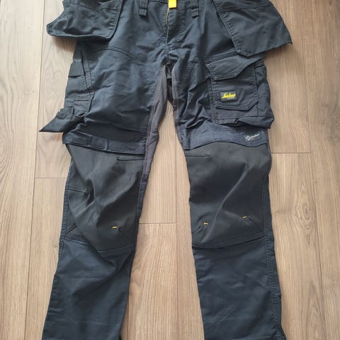 Snickers Workwear bukse for herre i størrelse 54. Buksen er i blå farge og har flere lommer, blant annet lårlomme med glidelås og klaff. Aldri vore brukt, bare prøvd på.