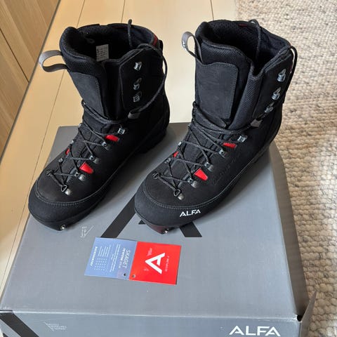 Alfa Skarvet GTX M Advance str 45 selges. Til BC binding. Veldig gode fjellskisko.
