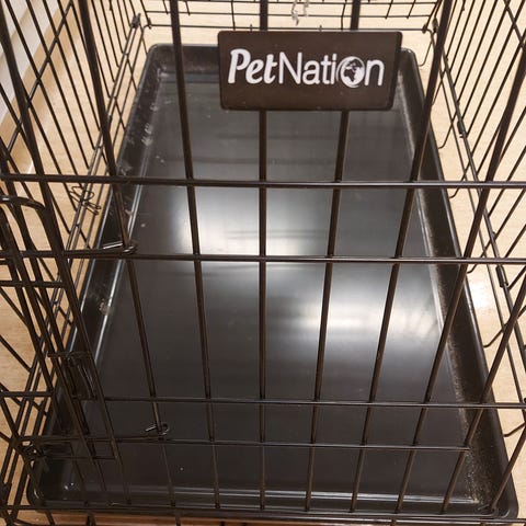 Bur som kan klappes sammen. En dør. Skråner i høyden.