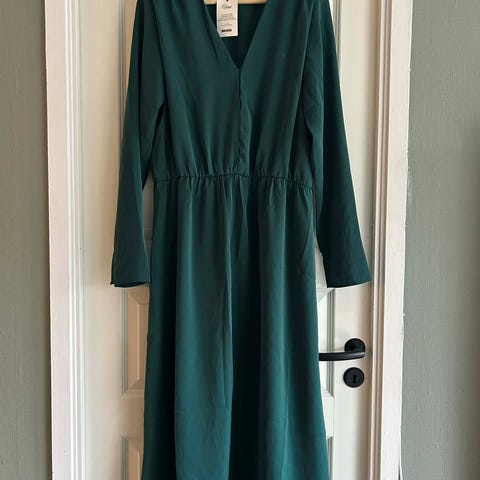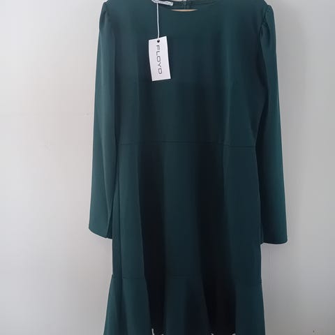Floyd hverdagskjole for dame i størrelse XXL. Kjolen er grønn og laget i polyester. Modellen har lange ermer, krage og knapping foran, samt knytebelte i livet for justering av passform. Passer som en enkel hverdagskjole eller til mer pyntede anledninger avhengig av tilbehør.