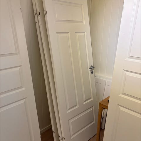 Dørene er ca. 20år, men er i god stand. Kan hentes etter 22.04.2026. Kr. 500,- for alle dørene.