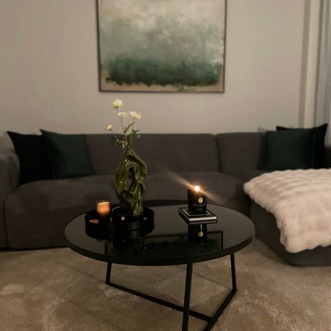 Gir bort et fint og dekorativt rundt sofabord i sort metall. Bordet har et moderne, litt industrielt preg og passer godt i både stue, TV-krok eller kjellerstue.