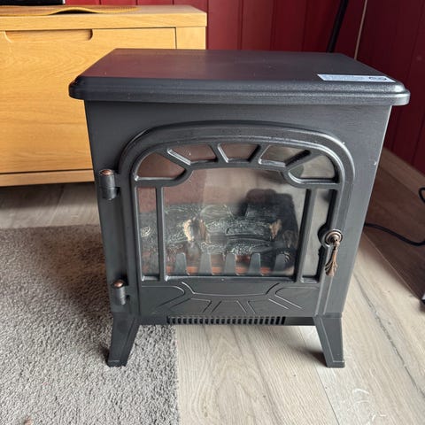 Selger en fin elektrisk peisovn som gir både varme og koselig stemning.