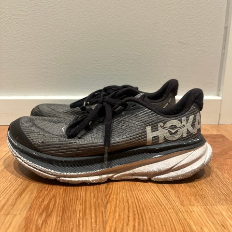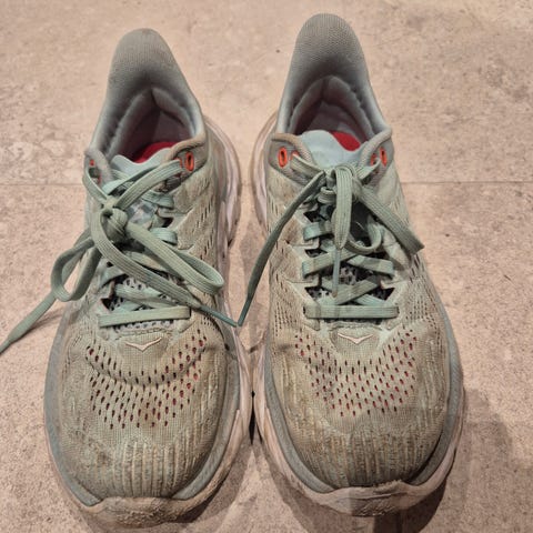 Hoka Clifton 9 i størrelse 36 selges. Lite brukt, normal slitasje, se bilder.