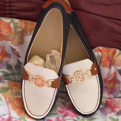 Selger ett par nye sko/ mocasiner i flotte grønnfarge,str 38. Ligger i skoposen. Selges for 390 ink helt hjem.