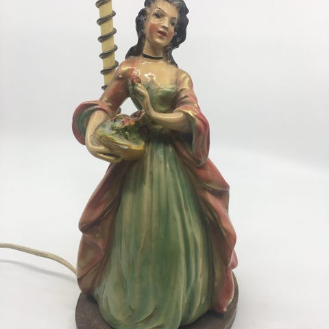 Bordlampe fra 50 tallet, mulig tidligere med skulptur av glasert gips/keramikk.