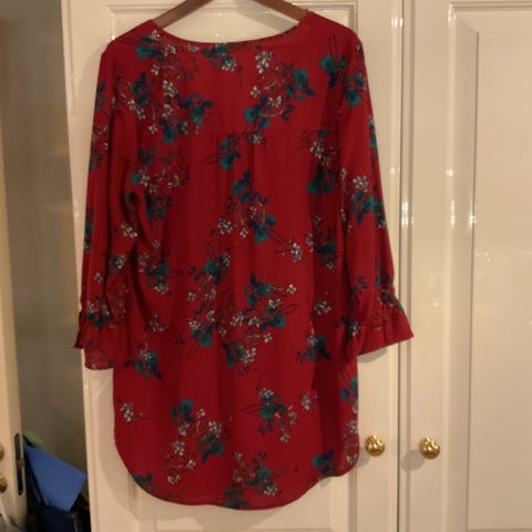 Rød finbluse med glittrende "gulltråder"og