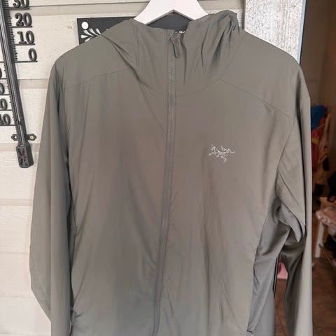 Arc'teryx jakke for herre i størrelse XL. Jakken er grønn med hette og hel glidelås foran. Passer som ytterjakke til hverdagsbruk og tur. Designet har diskret Arc'teryx-logo på brystet og enkel, funksjonell utforming.