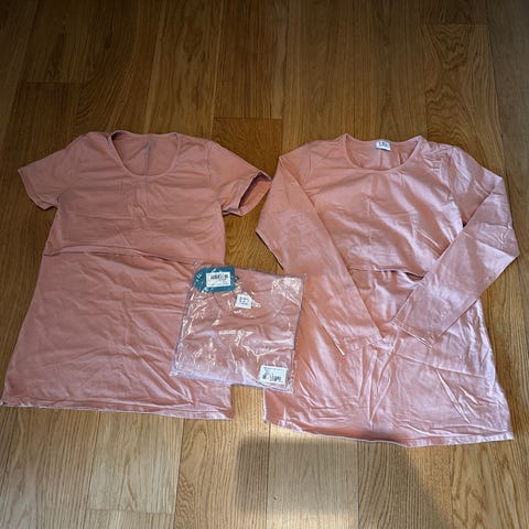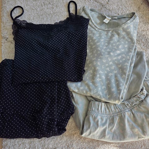 Fint brukt rosa og kvitstripete pysj til gravid str. S