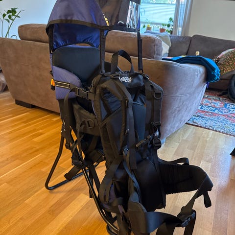 Fin bæremeis selge. Den er hel og fin og har ikke mye slitasje, men den har litt avfarging i stoffet, ellers ok. Alle reimer inntakte. Selges for 400