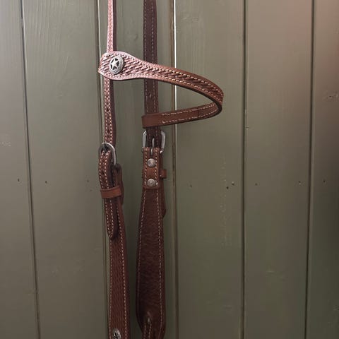 Passer til bruk med westernutstyr der man ønsker et mer dekorert hodelag i skinn. Flere varianter her i både i mørkebrunt, lysebrunt og i svart lær med mye sølv 🤩
