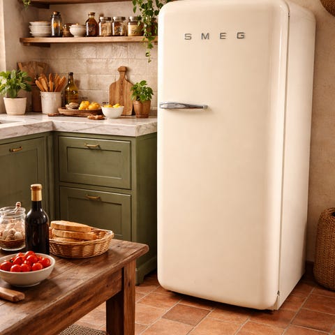 Smeg kjøleskap i retro farge. Kjøleskapet har én dør med integrert håndtak i metall. Innvendig er det flere justerbare glasshyller og en grønnsaksskuff nederst. Øverst er det et lite fryserom med egen dør. Egnet som frittstående kjøleskap på kjøkken, hybel eller andre rom der det er behov for kjølelagring av mat og drikke.