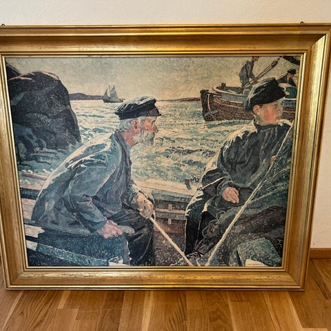 Selger et stort og klassisk maritimt bilde av Hans Gude. Perfekt for en tradisjonell stue, kontor eller på hytta ved sjøen!