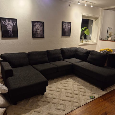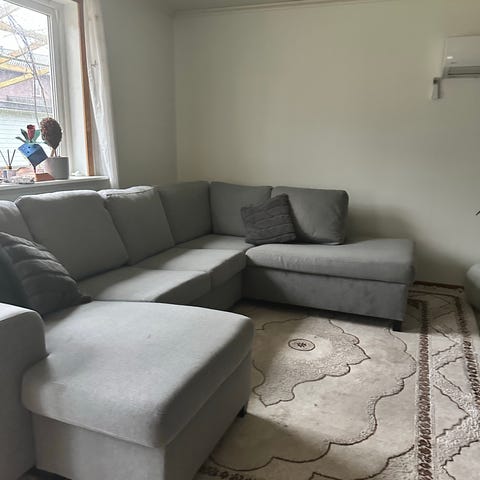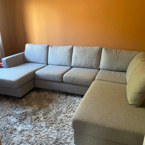 Selger sofa med vendbar sjeselong. Må hentes i andre etasje.