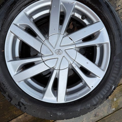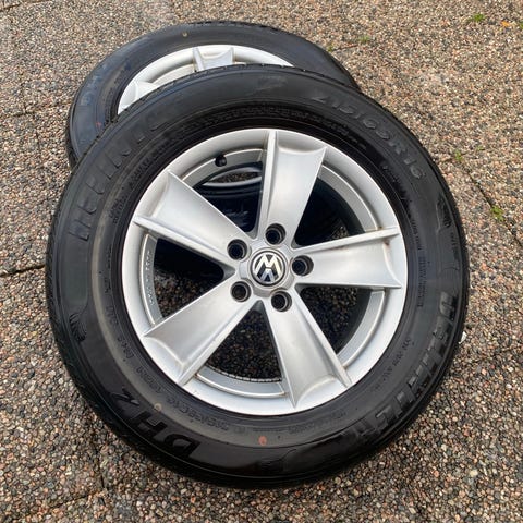 To Nokian dekk og to Vredstein sommerdekk på fine alu- felger. Dekkene er velbrukte men mønsterdybden er fremdeles 3-5 mm. Dekkene har vært på en VW Tiguan.