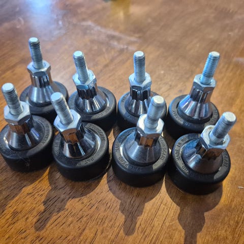 Soundcare SuperSpikes høyttalerspikes med 1/4" gjenger. To sett á 4stk. Merk tommegjenger, sjekk at disse passer med dine høyttalere - ingen retur.
