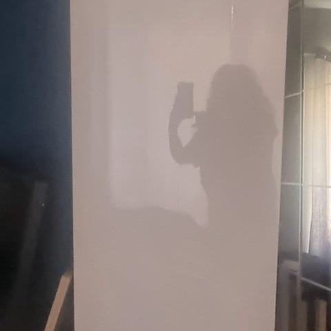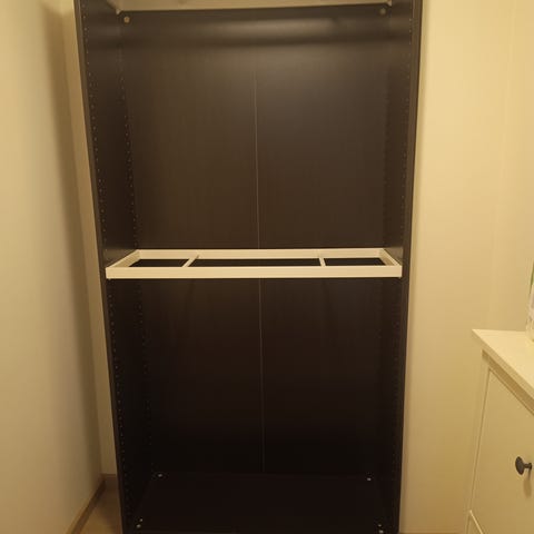 Det følger med en hylle med lys som skrur seg på når du åpner døren (mangler strømforsyningen). I tillegg følger det med en garderobestang.