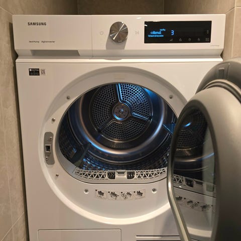 Tørketrommel tar 8 kg og vaskemaskinen 7 kg.