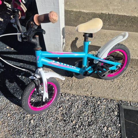 White AR 120Comp blå/lilla ane. En sykkel som er pent brukt av en på 6 år. Han ønsker seg så gjerne å kjøpe seg en sykkel som er til hans bruk, altså en større sykkel. Derfor selges denne. Den har støttehjul og kurv foran. Dette er en kvalitets sykkel, kjøpt på xxl.