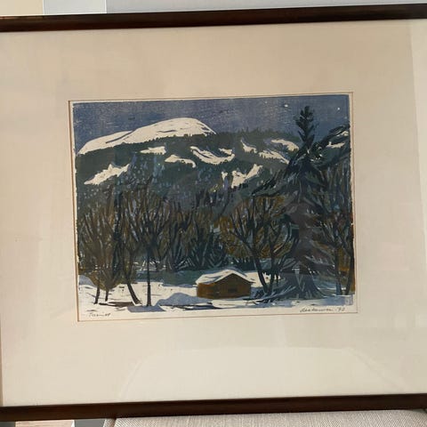 Terje Grøstad «Vinterlys» grafikk med ramme