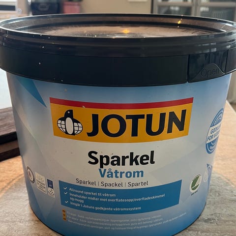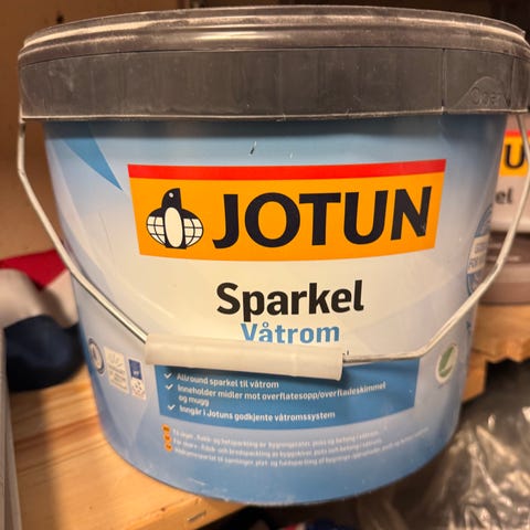 Selger en spann med Jotun våtromssparkel.