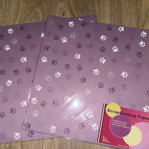 To mapper med masse fint papir. Inneholder bl.a. temaer som baby, ungdom, reise, vintage, romantisk, noen kjempefine med glitter.
