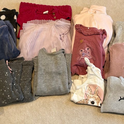 Selges en stor pose med jenteklær. Mest vår/ sommerklær. Brukt, men mye bruk igjen. Ulike merker, feks newbie, cubus, HM.